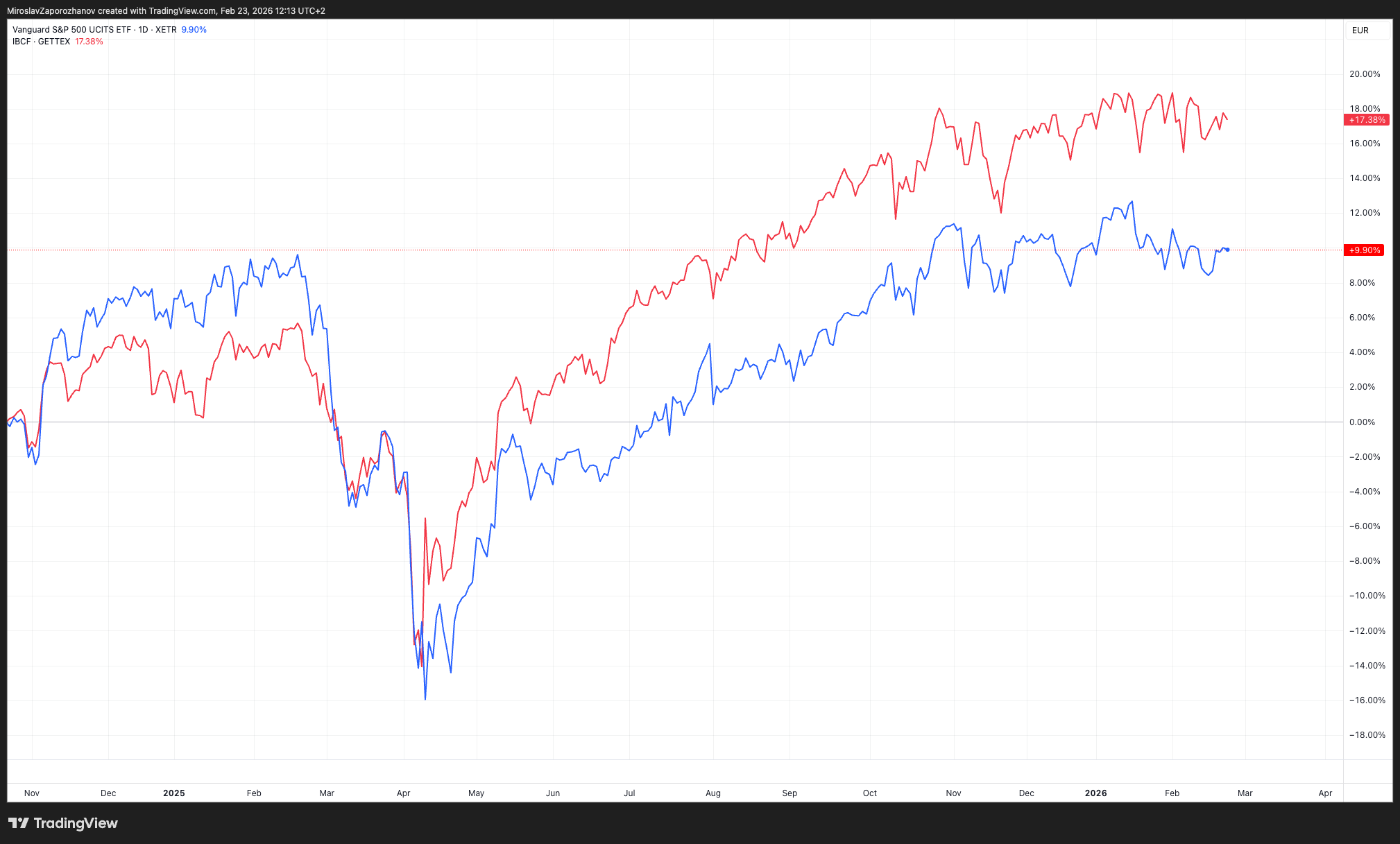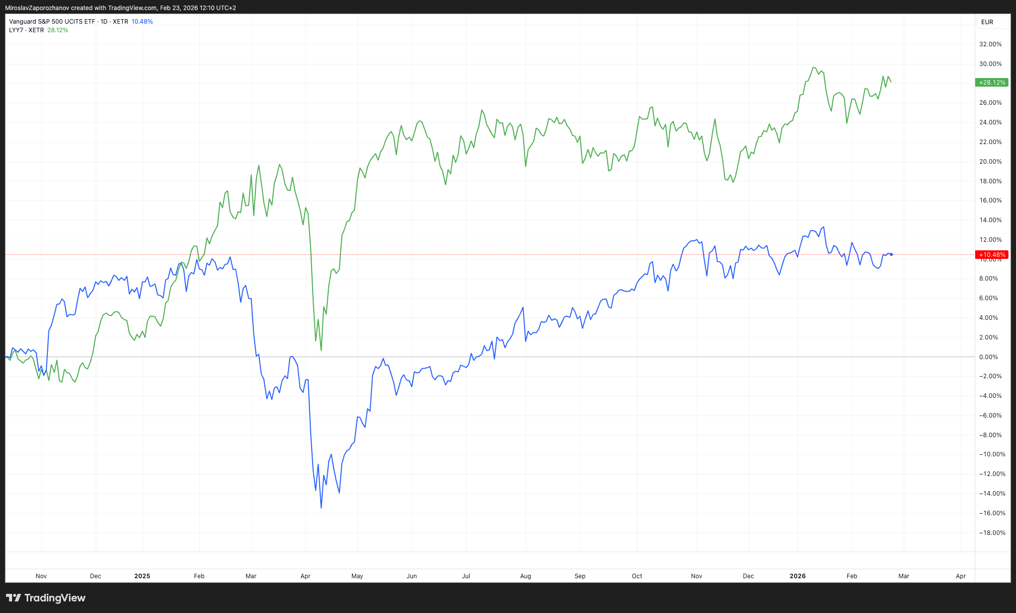 На първо място, по-широк набор от ETF-и намалява концентрацията в САЩ и добавя пазари, които в последните години изпреварват САЩ в локална валута, без да носи валутен риск за европееца – включваме на Европейски пазари е най-простият пример.